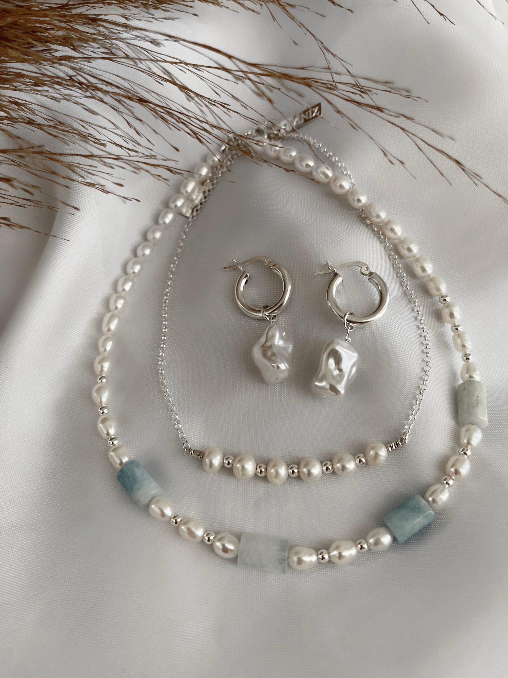 שרשרת ליב המושלמת עשויה פנינים בשילוב אבני חן וחרוזי כסף.